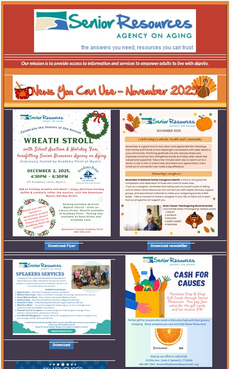 Senior Resources is proud to be one of the five Area Agencies on Aging of AgingCT.